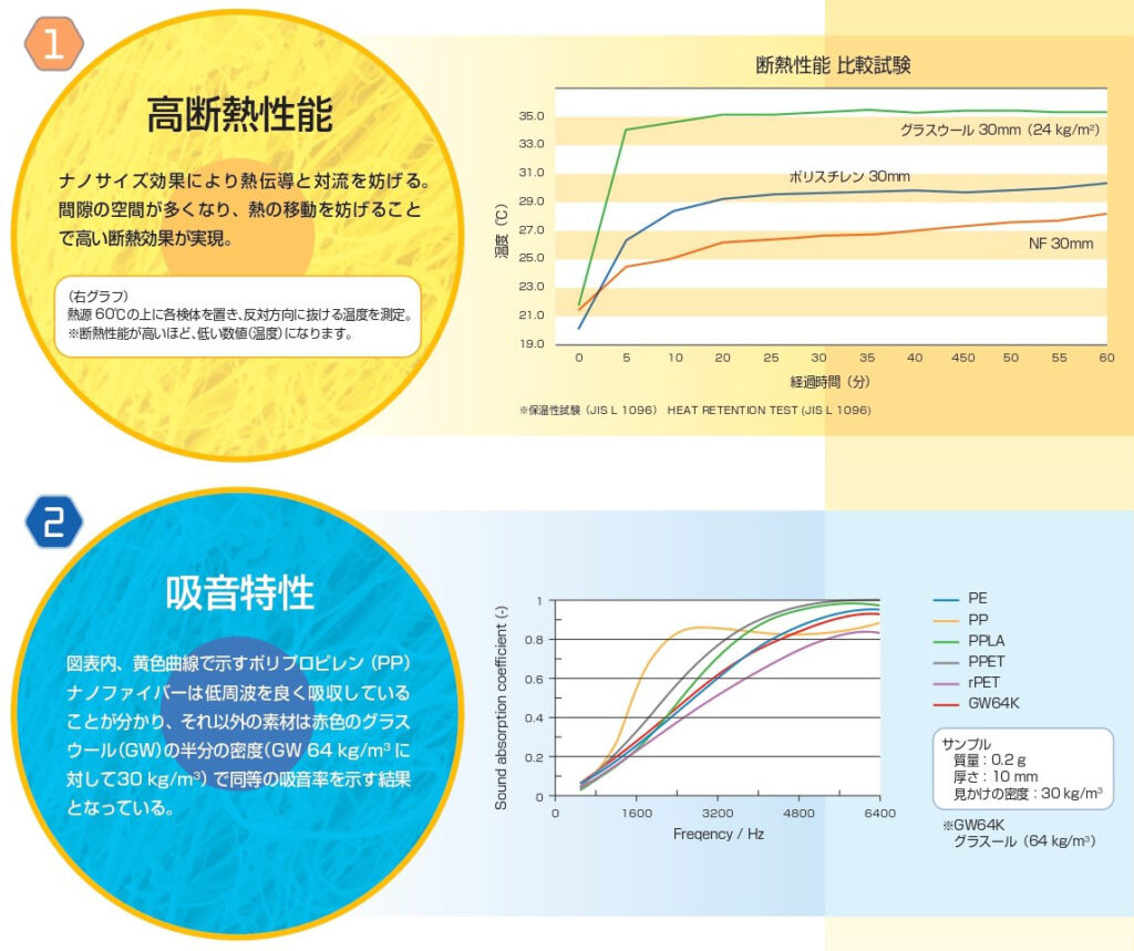 従って私たちはナノ領域の現象が発現する直径1nm~1,000nm程度の繊維をナノファイバーとする定義に賛同します。